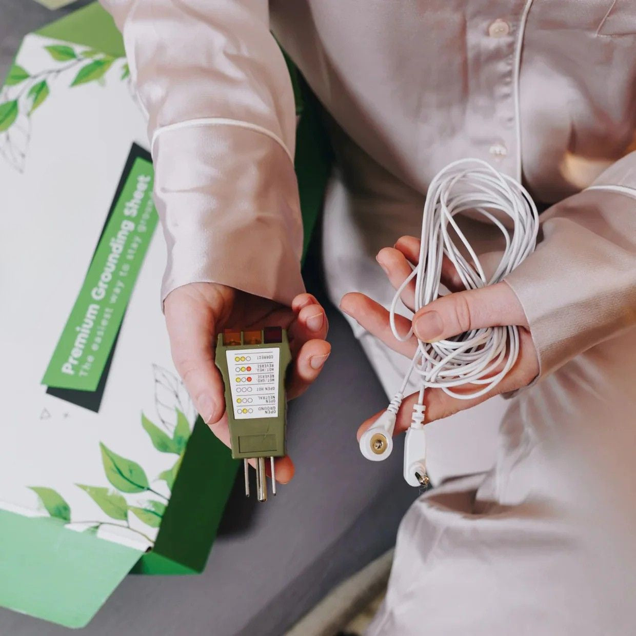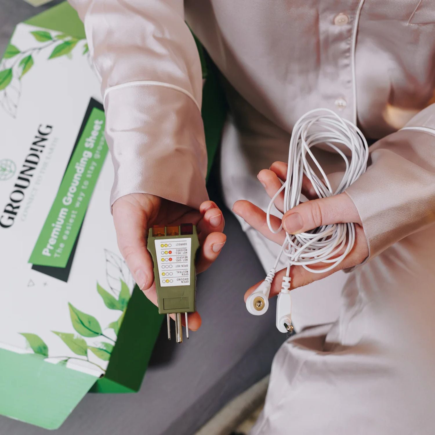 The Earthing Bedsheet transfers the Earth's electrons into your bed through the grounding cable in your wall. This allows you to receive the nurturing benefits of earthing during the comfort of your night's sleep.